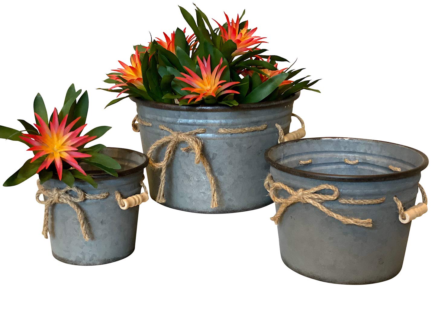 Amazon Com Stc World S 3 Metal Galvanized Buckets Containers Decorative Distressed Rustic Kitchen Pantry Bathroom Garden Planter Organizer Home Kitchen
